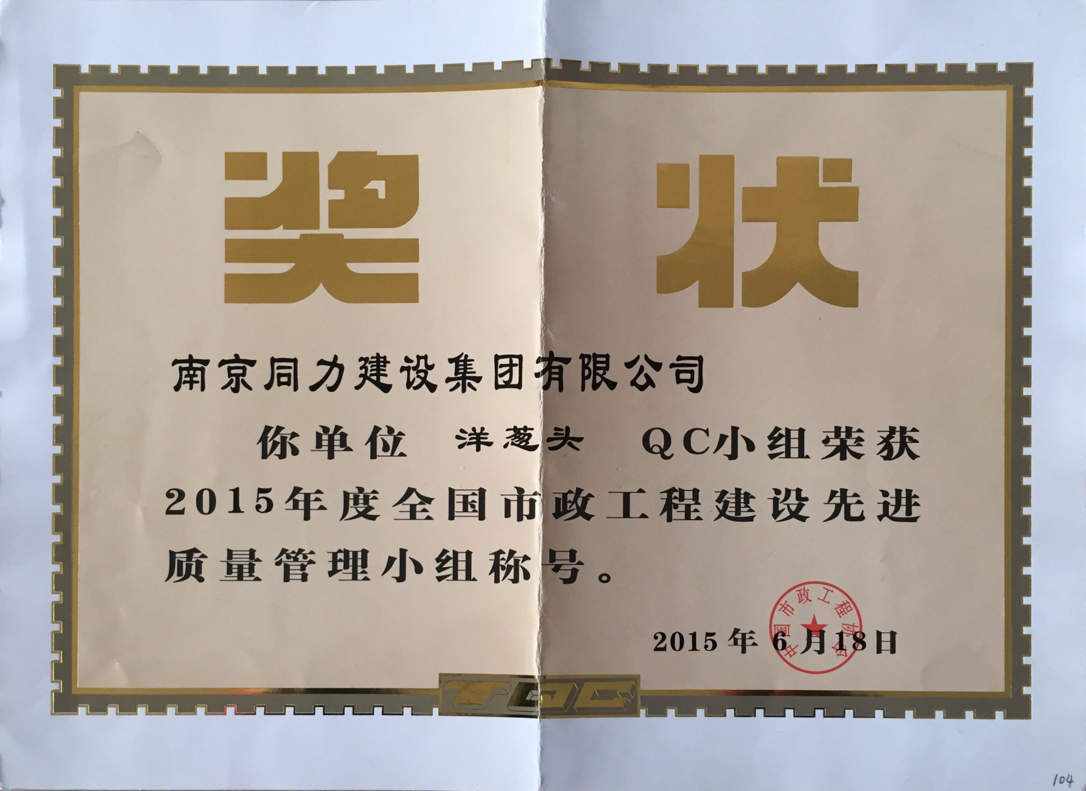 公司“洋蔥頭”QC小組榮獲2015年度全國(guó)市...