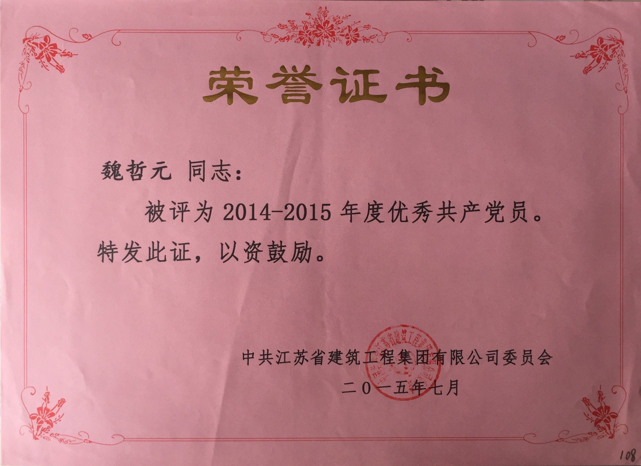 公司魏哲元被評(píng)為2014-2015年度優(yōu)秀共...