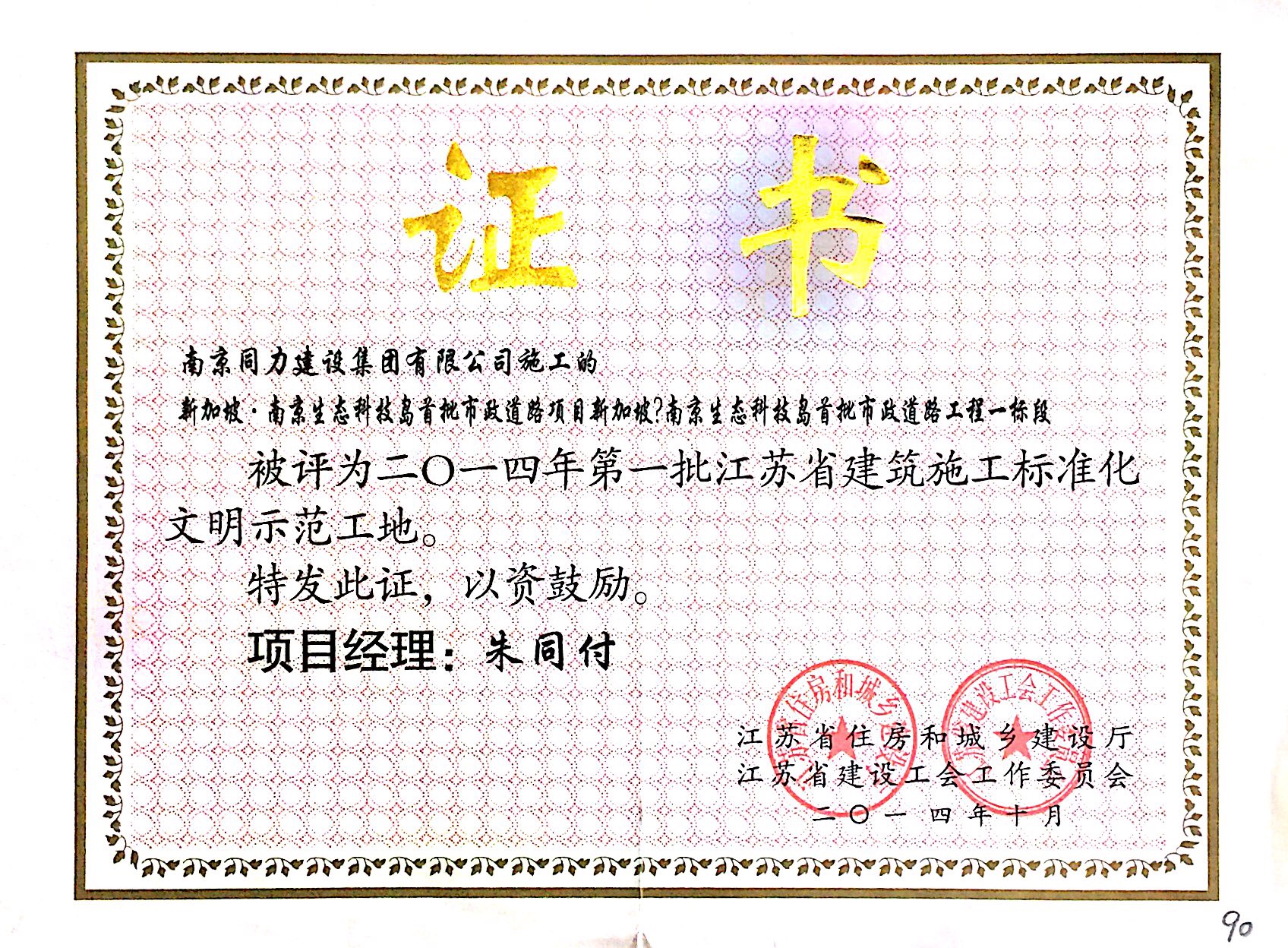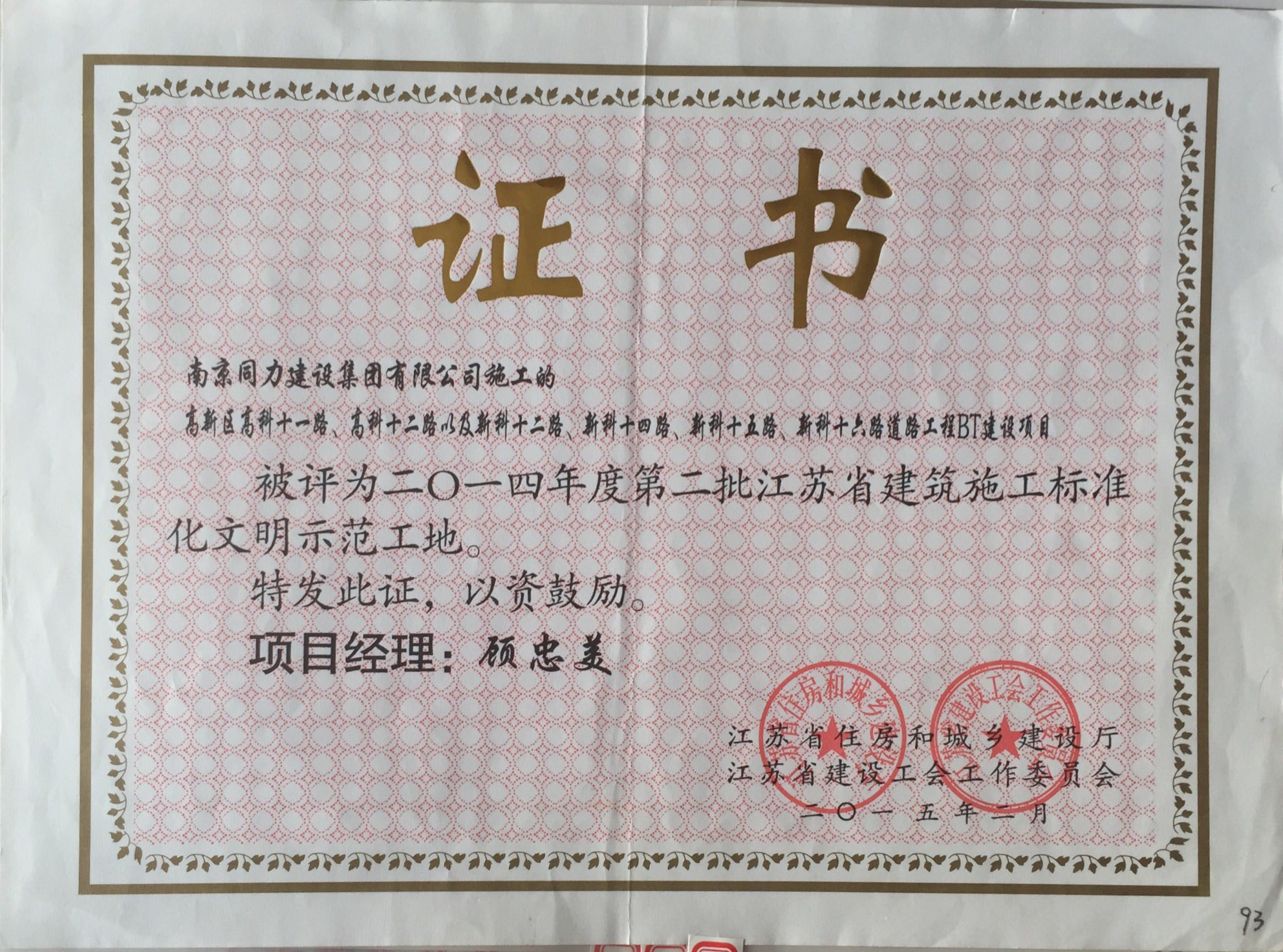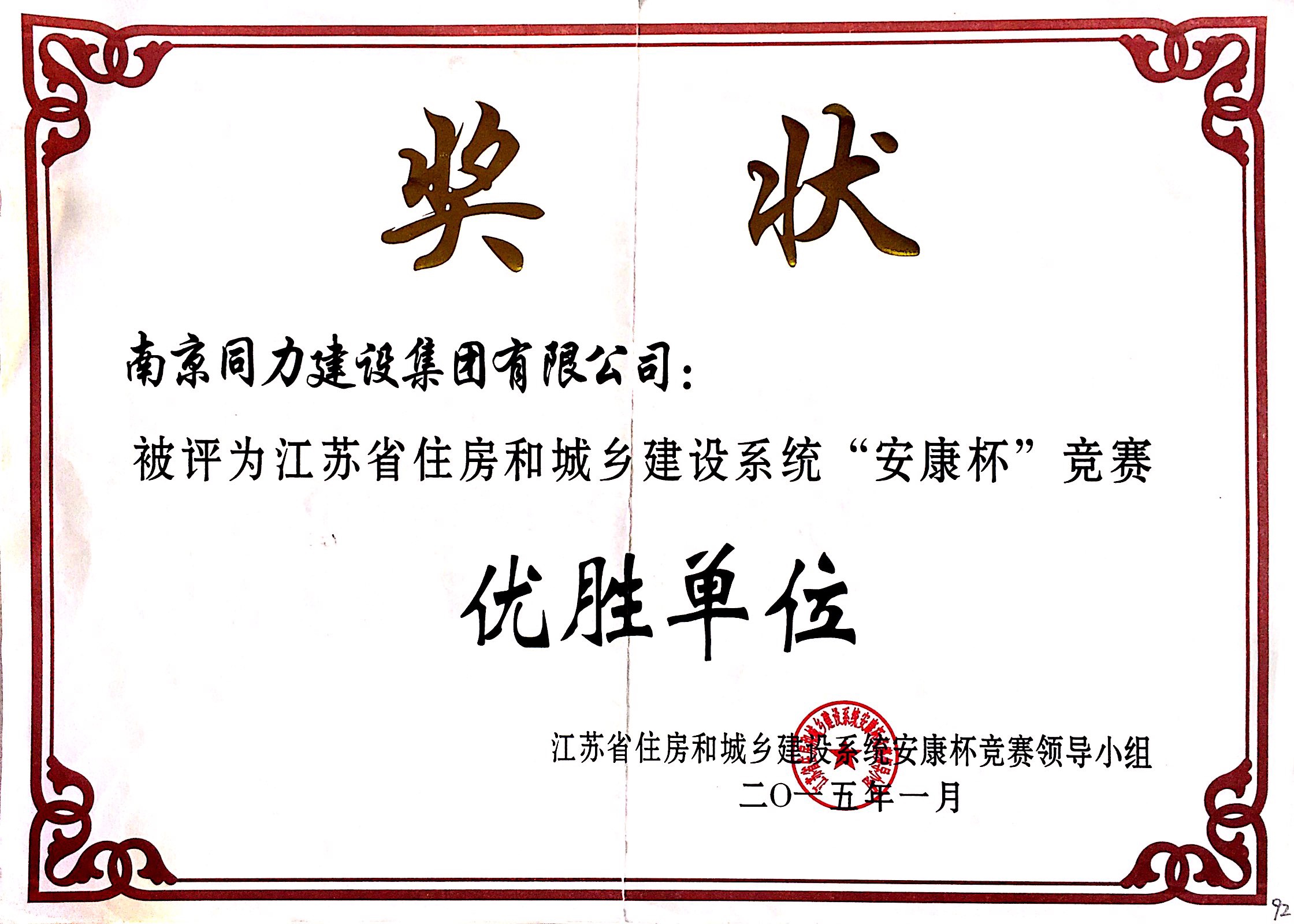 公司榮獲2014年度江蘇省建筑安全與設(shè)備...