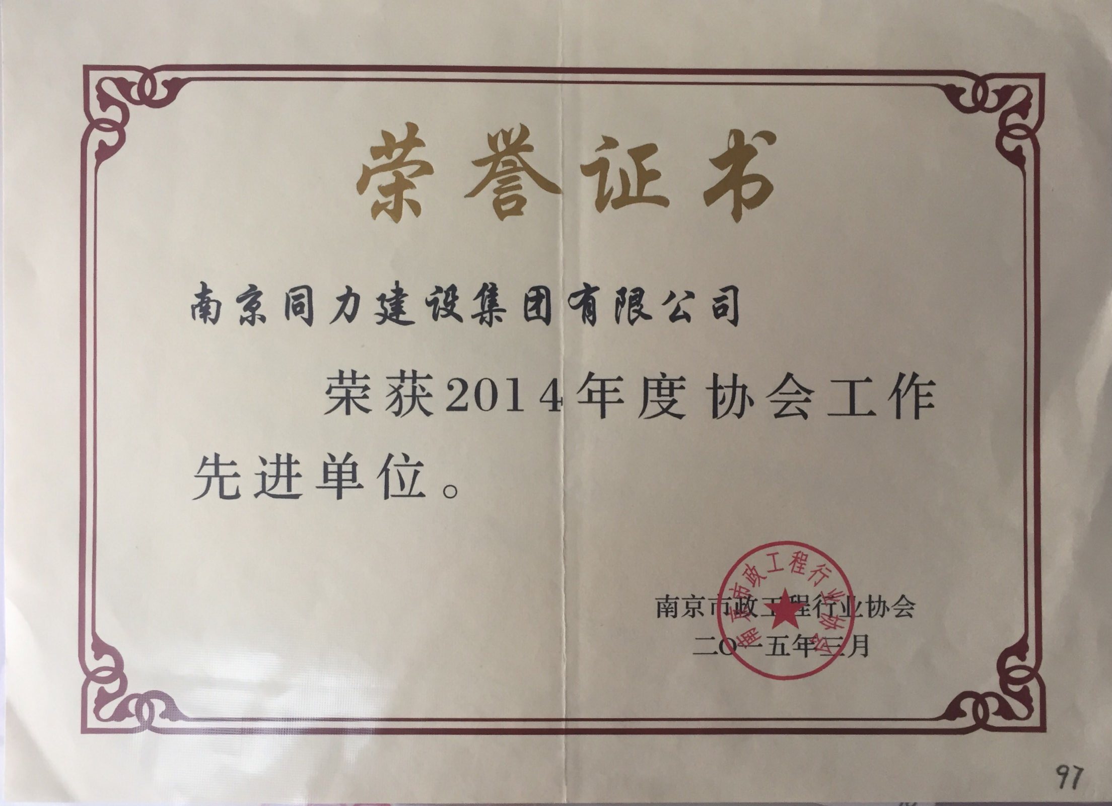 公司榮獲2014年度協(xié)會(huì)工作先進(jìn)單位