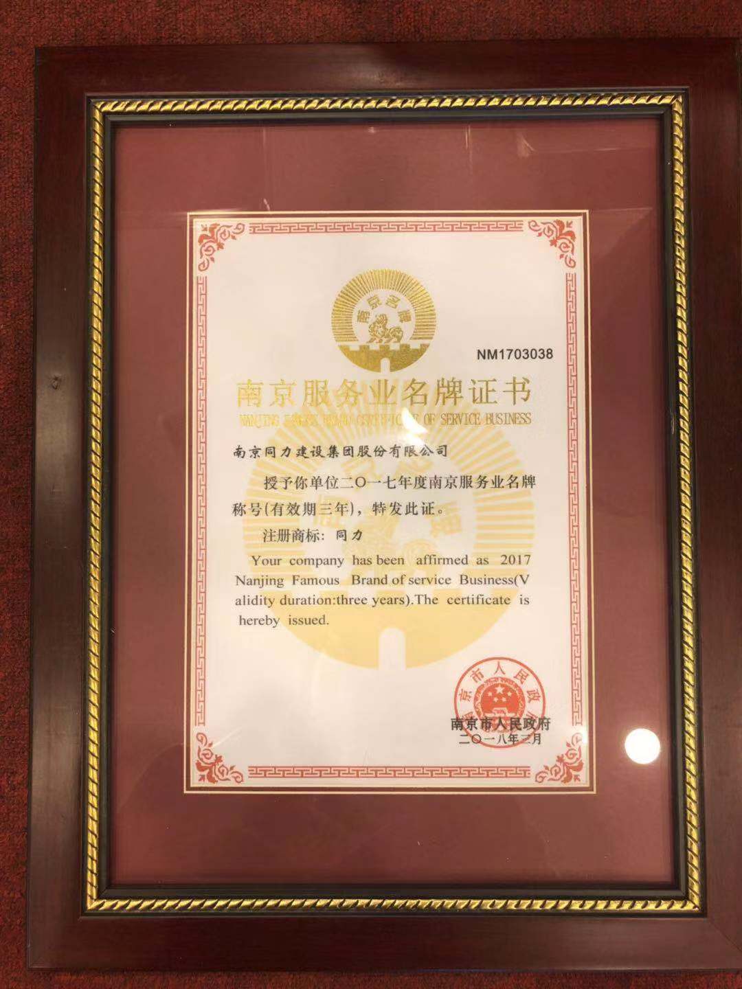 近日,同力建設被南京市名牌戰(zhàn)略推進委員會授予 “南京服務業(yè)名牌”證書,同力建設再添一張新名片。