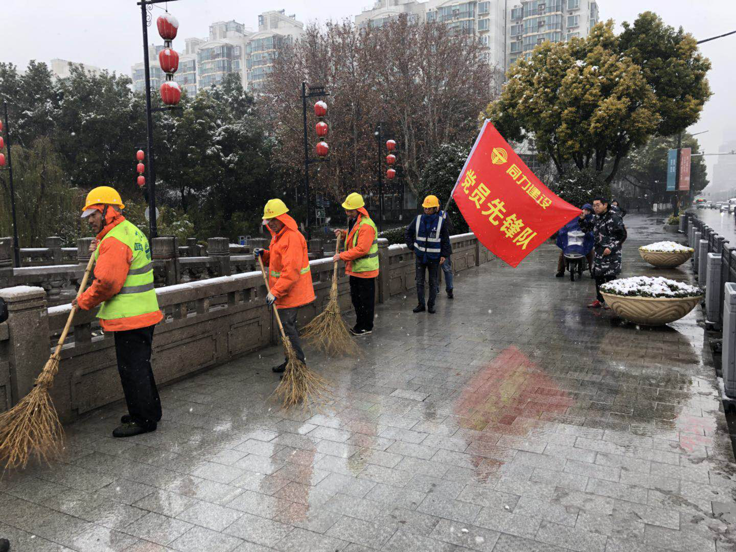 2月7日深夜,南京暴雪,主城區(qū)積雪厚度達(dá)12cm。積雪覆蓋給城市出行帶來了諸多不便,也給安全管理增添了隱患。同力建設(shè)掃雪大軍不敢懈怠。分撒融雪劑、機(jī)械除雪、人工清掃……掃雪隊(duì)伍持續(xù)作業(yè),確保玄武大道、長樂路、龍?bào)粗新?、江北大道等交通要道全部暢通。雪情就是命令!?dāng)千家萬戶依然沉浸在新年的喜悅中時(shí),不少還沒來得及合眼的冰雪戰(zhàn)士,喝了口熱湯再度出征。