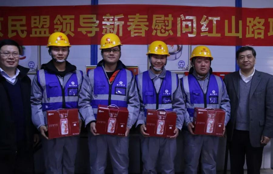 1月14日下午,王汝成副主席一行頂著寒風(fēng)先后前往紅山路-和燕路快速化改造SG1標(biāo)施工現(xiàn)場(chǎng)以及項(xiàng)目部,看望慰問(wèn)奮戰(zhàn)中的一線職工,為他們送上節(jié)日禮品,同時(shí)南京民盟書畫院的書法家們也當(dāng)場(chǎng)為大家書寫福字與春聯(lián),送上第一縷新春的問(wèn)候。南京民盟歌舞團(tuán)的藝術(shù)家也在現(xiàn)場(chǎng)用歌聲送上新春祝福。民盟市委領(lǐng)導(dǎo)詳細(xì)了解了紅山路項(xiàng)目管理與施工人員的工作生活、防寒保暖措施、安全生產(chǎn)等情況,感謝他們戰(zhàn)嚴(yán)冬、斗寒風(fēng)、保生產(chǎn)的奉獻(xiàn)和付出,并叮囑大家要加強(qiáng)寒冷情況下勞動(dòng)保護(hù)工作,注意勞逸結(jié)合,確保身體健康和安全,讓廣大一線員工切身感受到了民盟市委領(lǐng)導(dǎo)的關(guān)愛(ài)。
