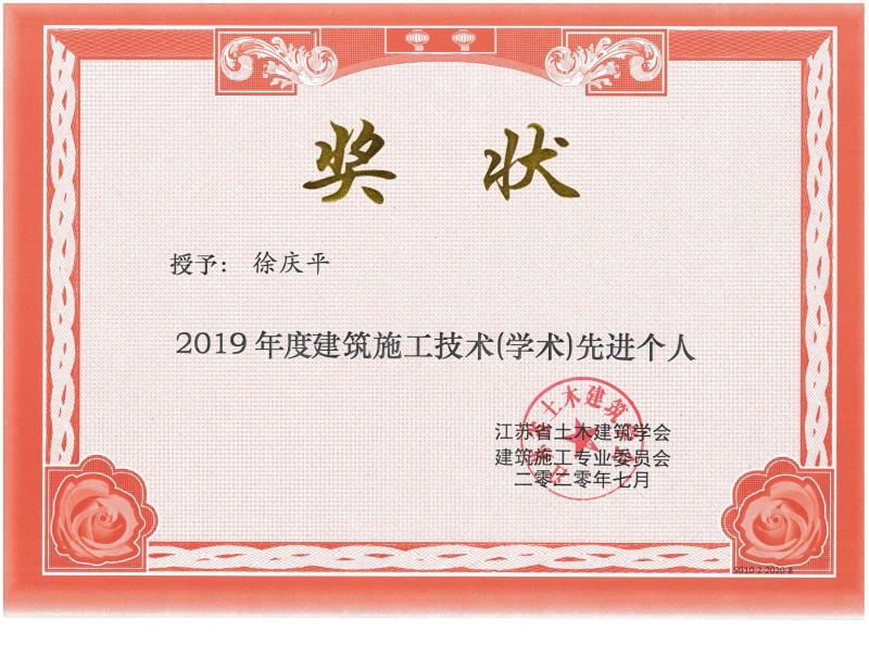 為全國市政工程建設(shè)QC小組活動優(yōu)秀推進者、江蘇省建設(shè)優(yōu)秀科技成果二等獎省級建設(shè)科技工作先進個人。