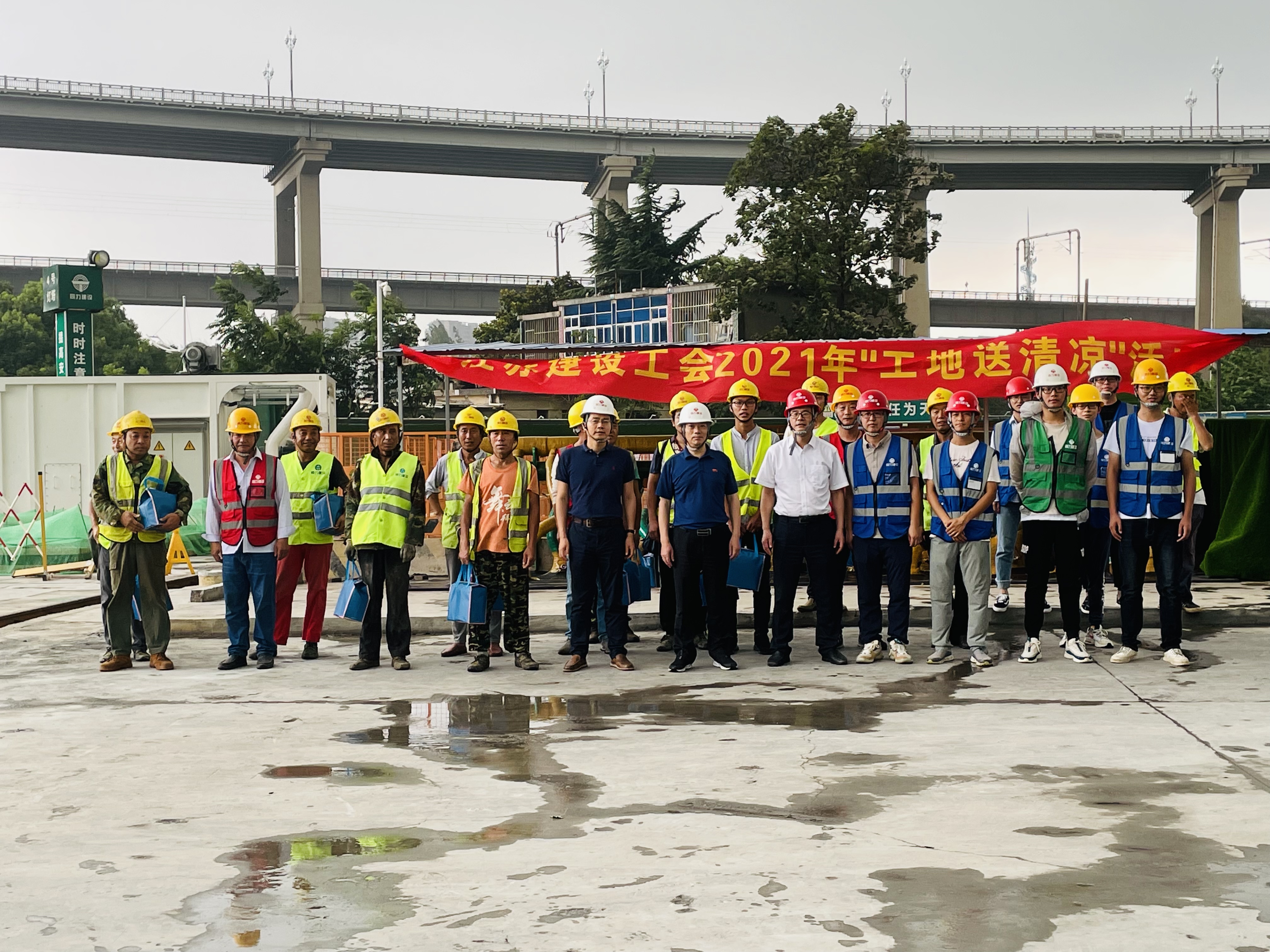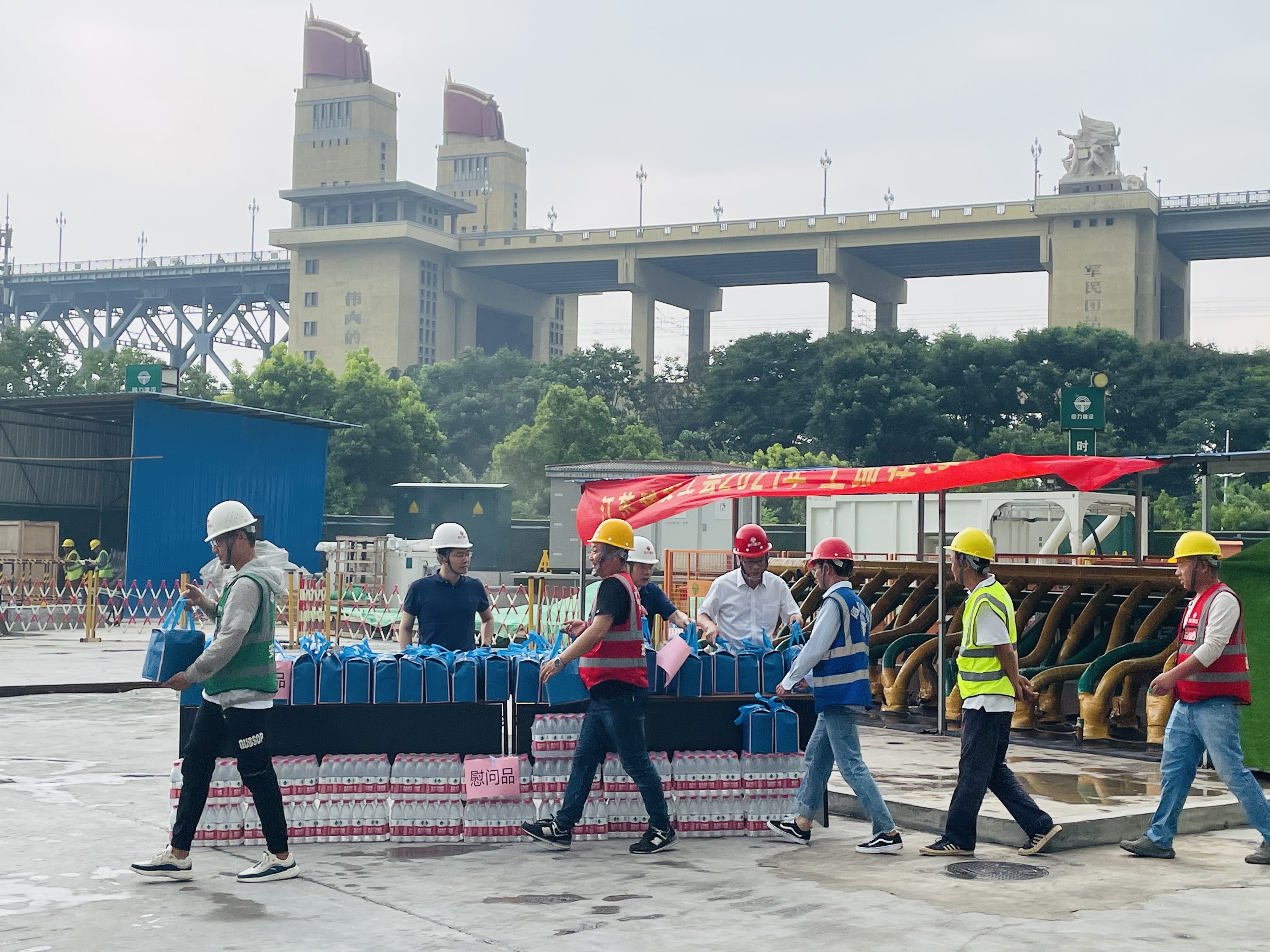 7月16日,江蘇省建設(shè)工會(huì)領(lǐng)導(dǎo)佘玉龍、徐為軍,在南京同力建設(shè)集團(tuán)黨總支書(shū)記兼工會(huì)主席仇偉明的陪同下,來(lái)到江北新區(qū)水環(huán)境一期工程,看望慰問(wèn)堅(jiān)守在工程一線的員工們。