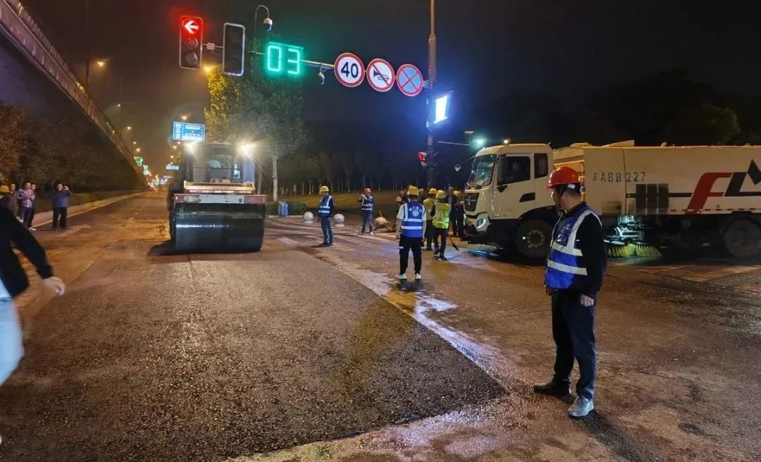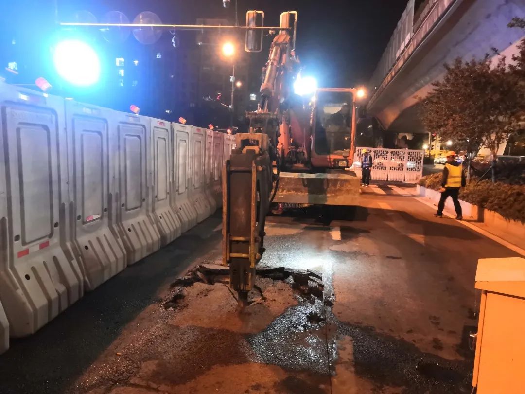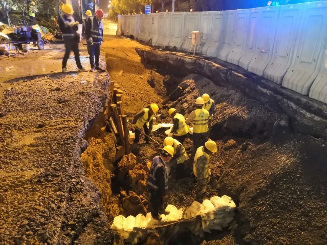 4月28日下午,同力建設組織搶險救援隊伍抵達老排水管道破損現(xiàn)場,立即對現(xiàn)場進行了臨時回填,并于29日凌晨1點完成路面瀝青攤鋪,恢復道路通行。