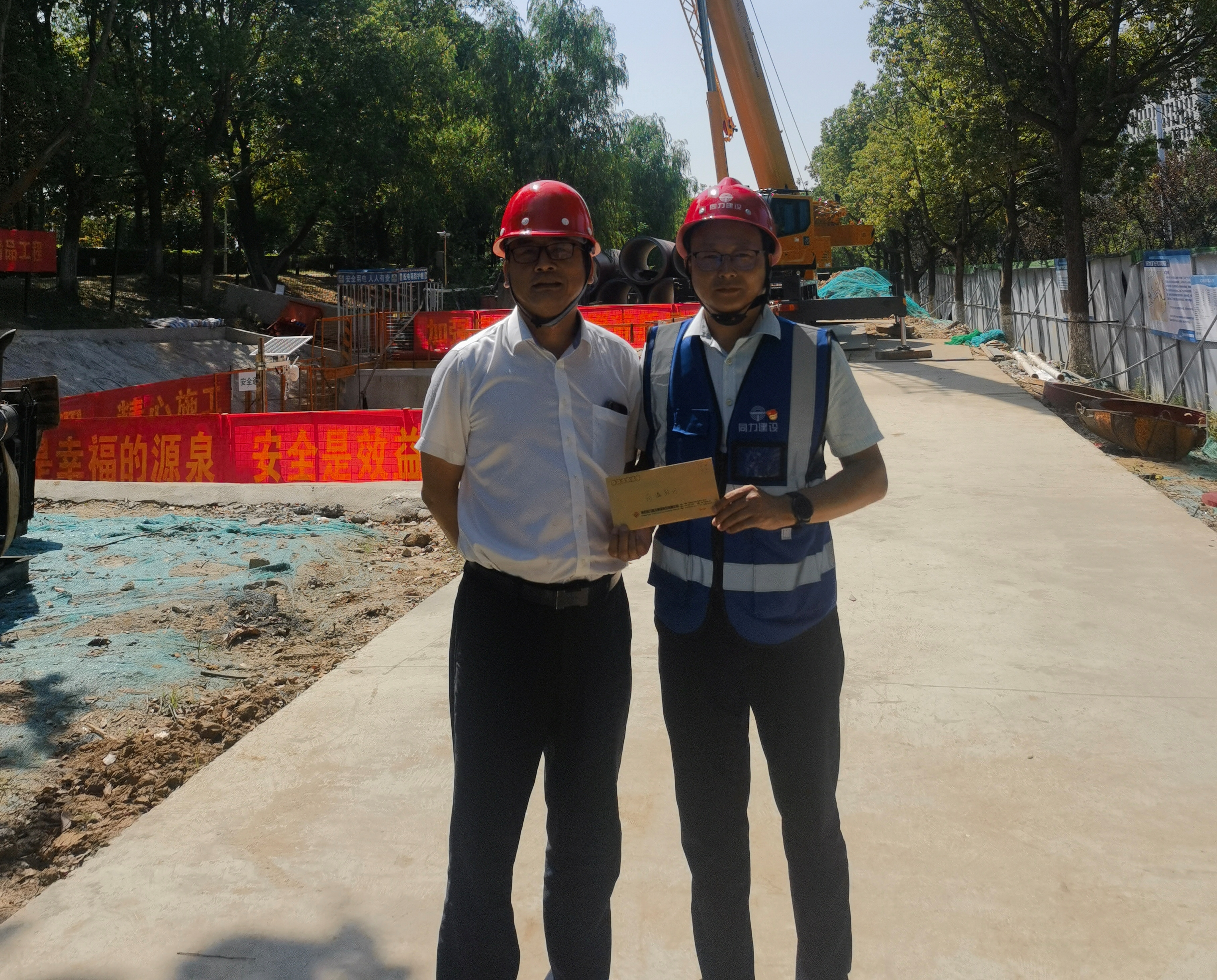 2023G03地塊配套道路改建項(xiàng)目 此次慰問(wèn)為奮戰(zhàn)在項(xiàng)目一線的建設(shè)者送去了夏日里的“清涼”,讓堅(jiān)守在烈日下的一線作業(yè)人員感受到了公司的深切關(guān)懷和濃濃關(guān)愛(ài)。同力建設(shè)將恪守以人為本、安全為要的發(fā)展理念,持續(xù)落實(shí)好各項(xiàng)關(guān)懷舉措,保證各項(xiàng)工作高質(zhì)量、安全、有序開(kāi)展。