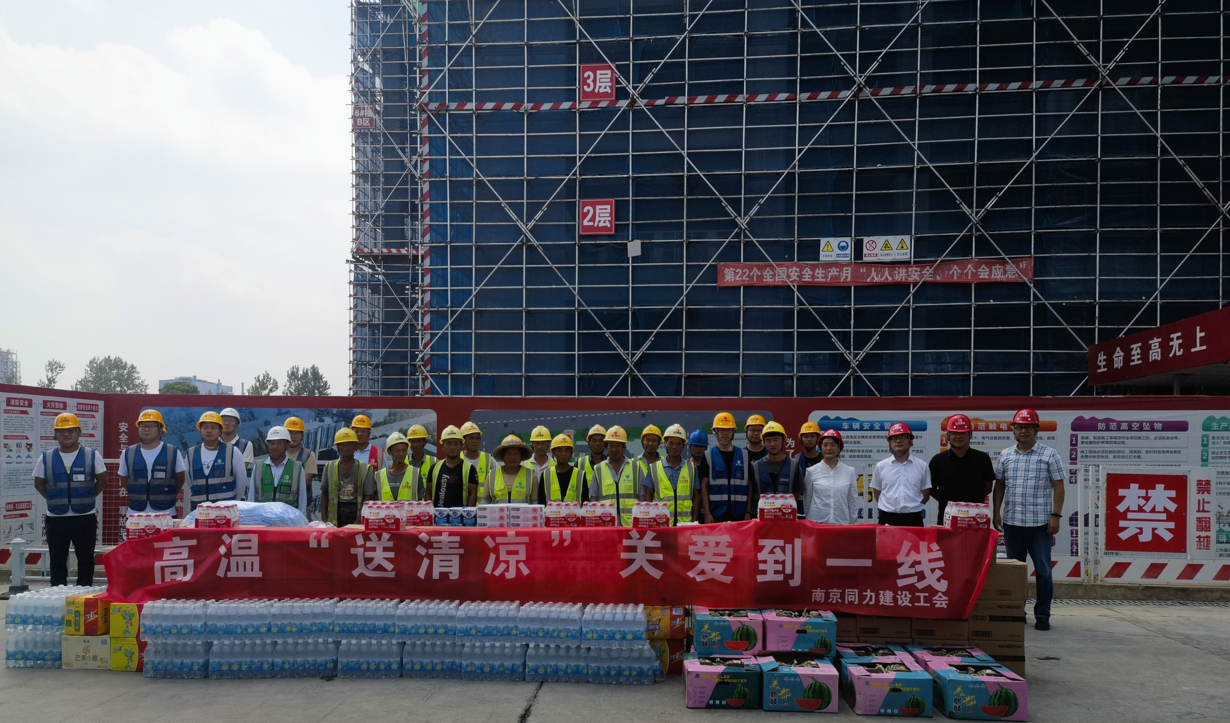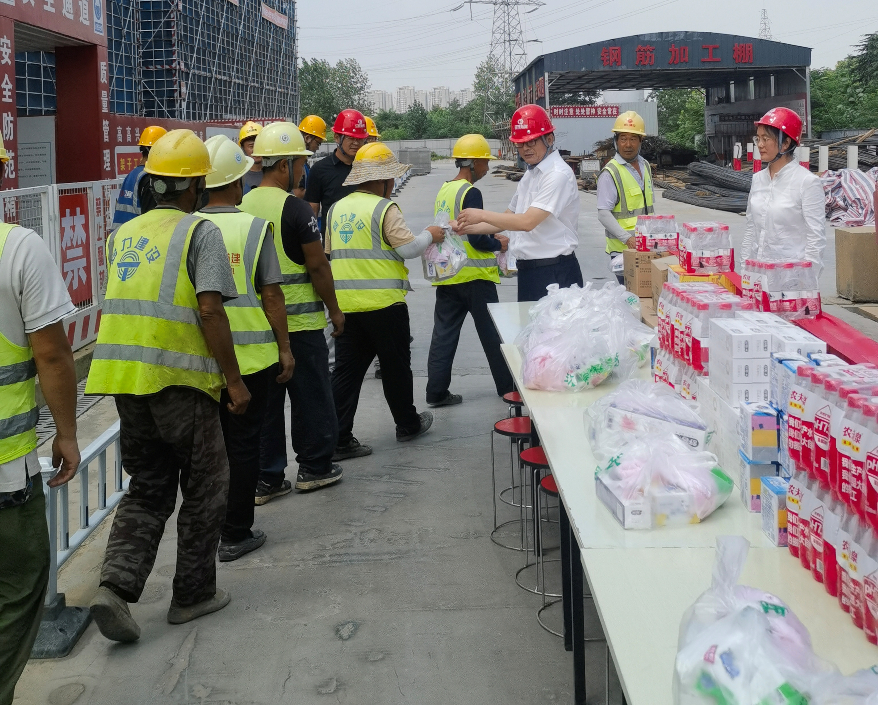烈日炎炎,心系職工的腳步匆匆,近日,同力建設(shè)黨總支書記兼工會(huì)主席仇偉明帶隊(duì)赴項(xiàng)目現(xiàn)場(chǎng)開(kāi)展高溫慰問(wèn)活動(dòng),為奮戰(zhàn)在酷暑中的一線職工送去清涼和關(guān)愛(ài)。同力建設(shè)調(diào)研員徐慶平、總經(jīng)理助理張穎陪同。