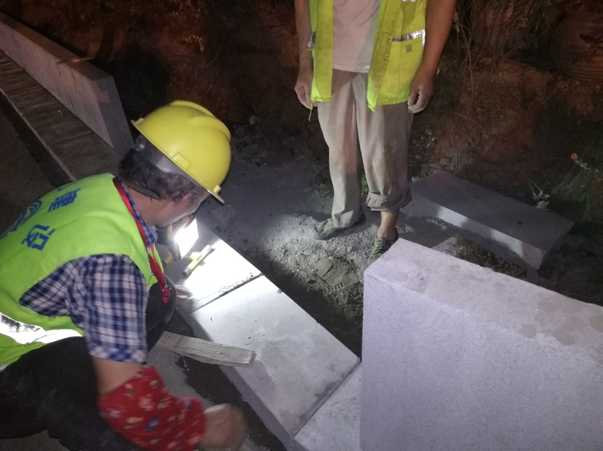 開(kāi)工后外部條件復(fù)雜,名城會(huì)、中高考護(hù)考、梅雨等都大大影響了工期。開(kāi)保工至今幾乎有2\3的時(shí)間無(wú)法正常施工。針對(duì)護(hù)考、重要活動(dòng)保供節(jié)點(diǎn)等特殊時(shí)段,正一方面多方協(xié)調(diào),盡可能爭(zhēng)取相對(duì)寬松的外部條件;一方面果斷調(diào)整工序,在禁運(yùn)禁噪前夕組織加大力量集中實(shí)施產(chǎn)生道大量渣土和噪音的側(cè)平石拆除作業(yè),并用圍擋密?chē)甲≡瓊?cè)平石區(qū)域防止土方流失。確保了在護(hù)考時(shí)期可以只施工路緣石鋪貼等不產(chǎn)生噪音的工序。同時(shí)為了切實(shí)在護(hù)考期間將噪音降至最低,經(jīng)過(guò)調(diào)研,項(xiàng)目部給各作業(yè)班組更換采用太陽(yáng)能充電鋰電池LED燈等新型照明設(shè)備。這類(lèi)新設(shè)備價(jià)格不貴,又不用燃油發(fā)動(dòng)機(jī)提供電能,不僅解決了燃油發(fā)動(dòng)機(jī)的噪音問(wèn)題,同時(shí)移動(dòng)便利也方便了施工。